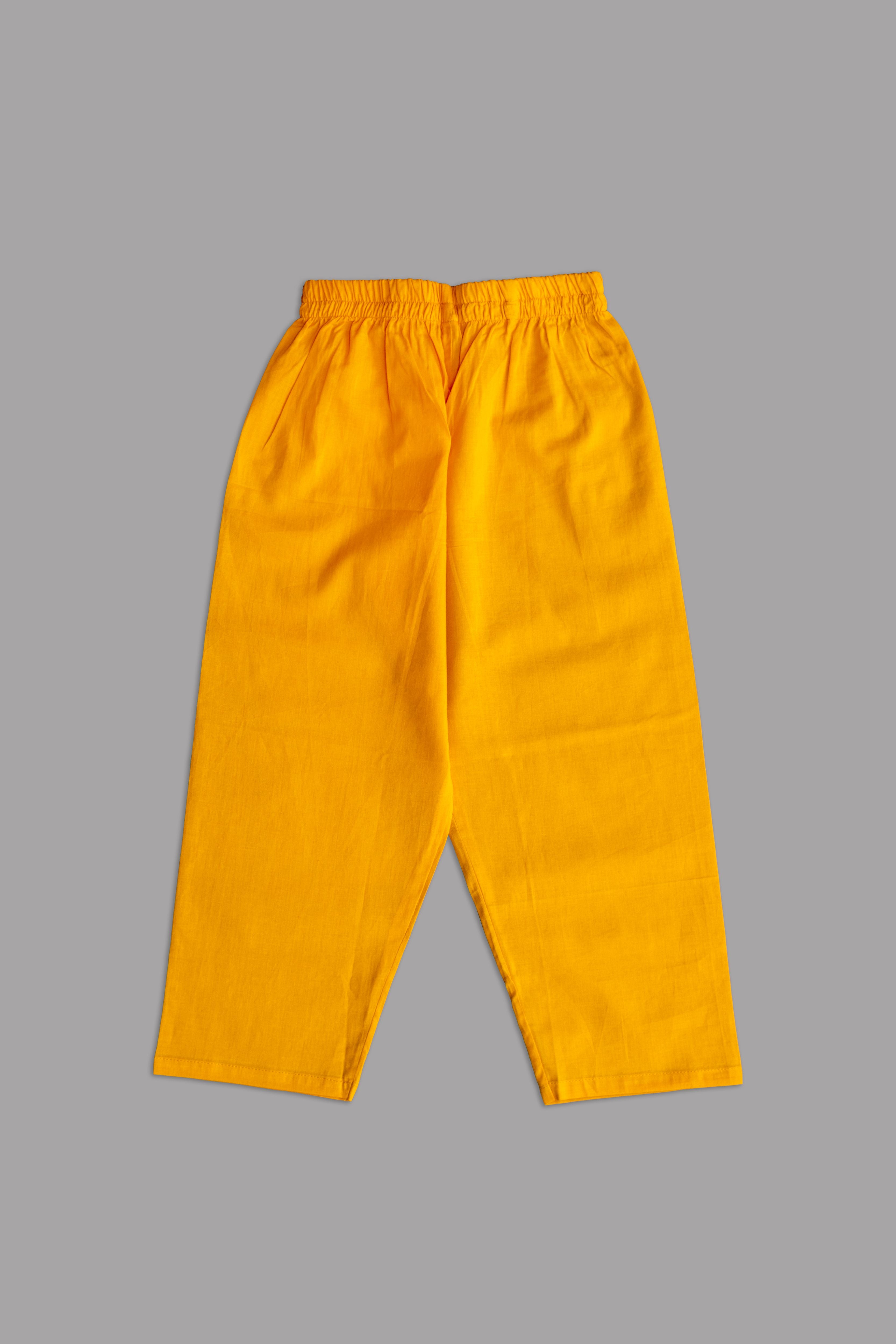 Festive Vibes: Bright yellow pajama paired with a vibrant kurta makes it a cheerful pick for pujas, weddings, or cultural functions.