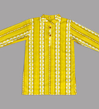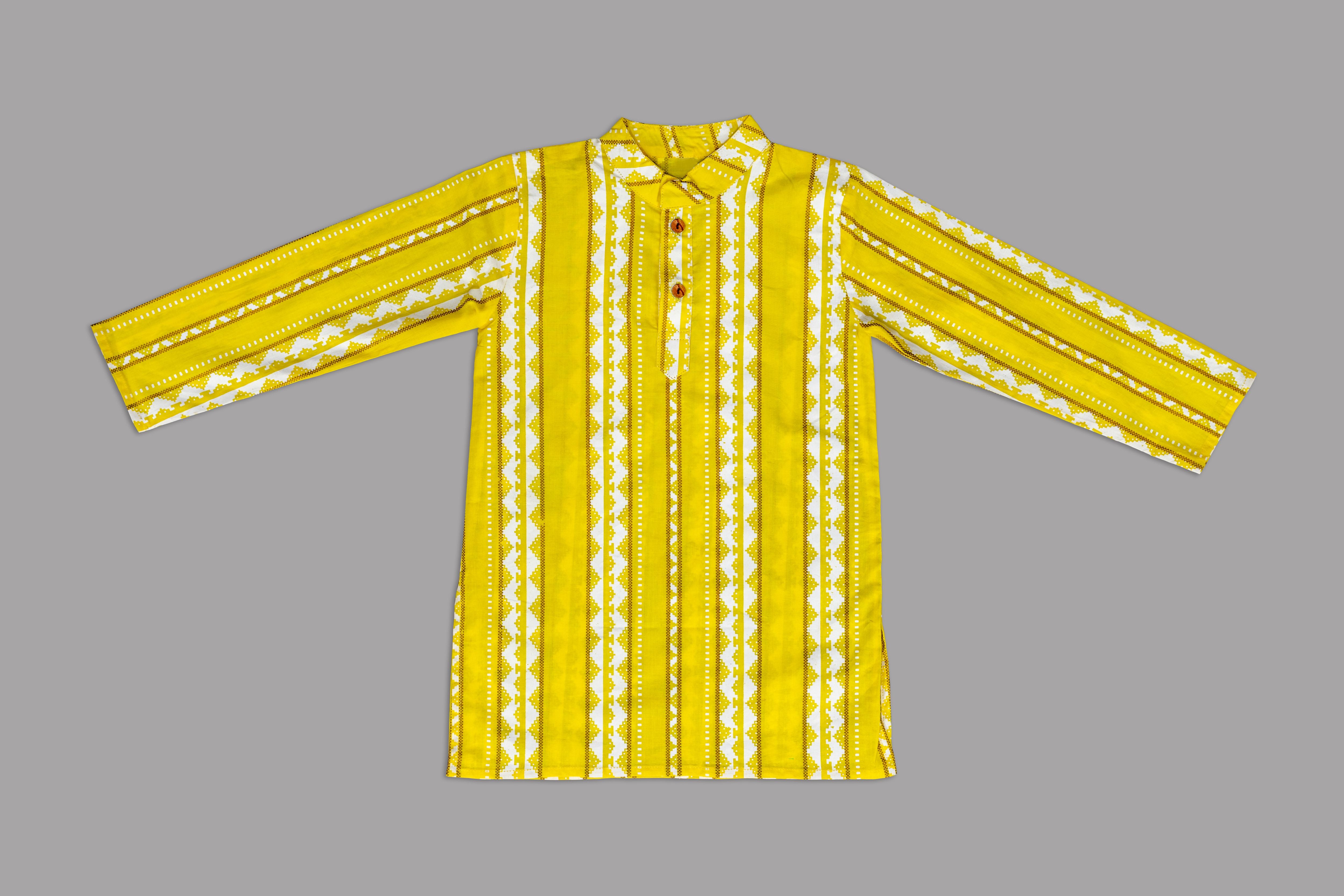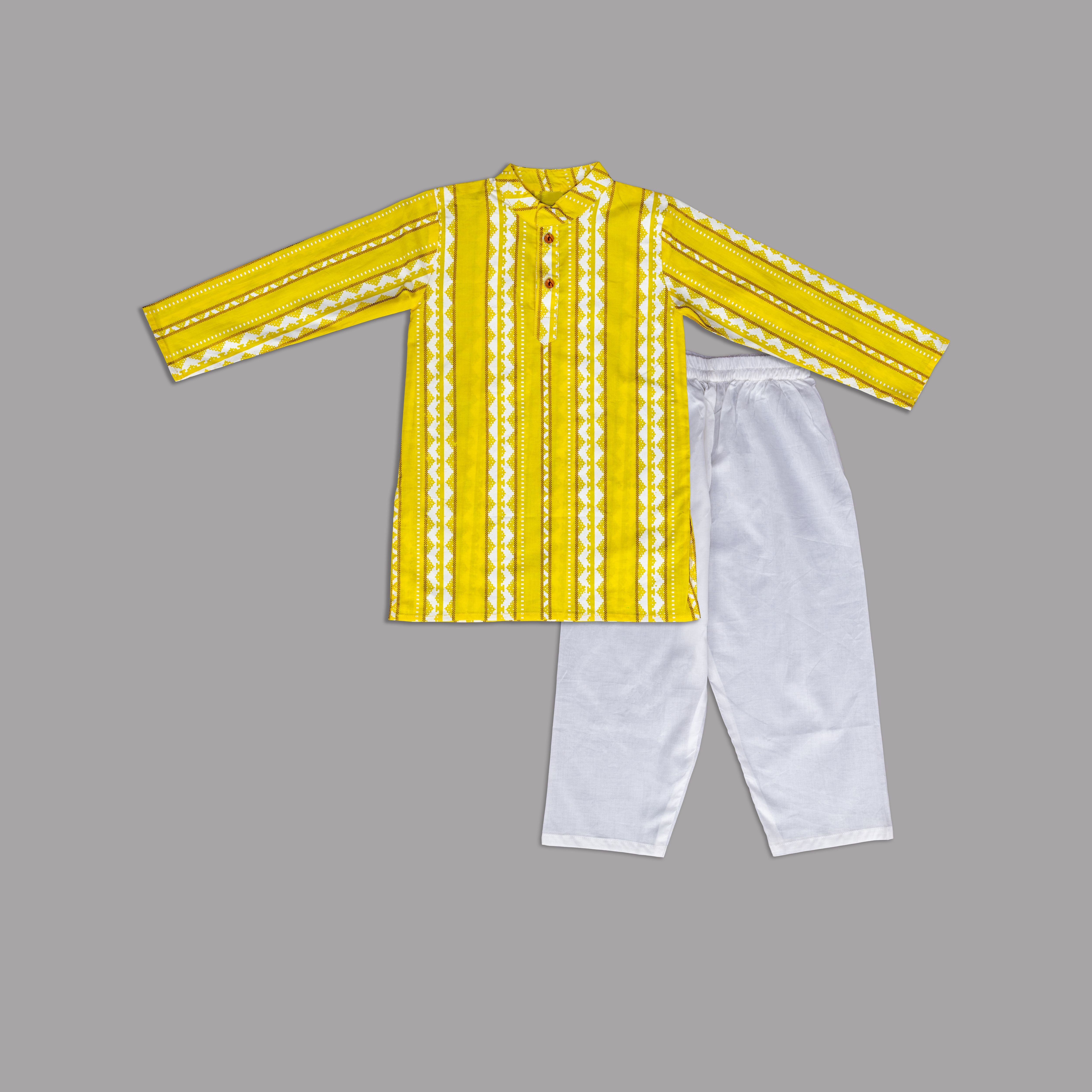 Bright, bold, and beautifully traditional — this yellow striped kurta paired with classic white pajamas brings effortless style to any festive occasion. Crafted in breathable cotton with subtle detailing, it’s perfect for playful comfort while still looking celebration-ready.